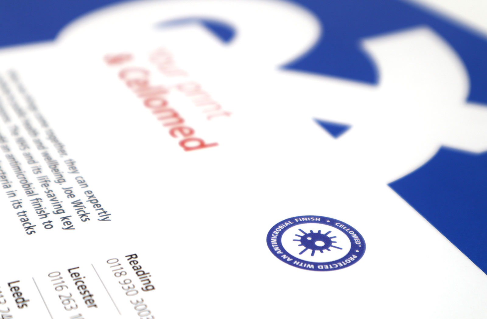 Cellomed Coating can be applied as an overall or spot coating that helps stop the spread of bacteria on printed matter. It’s ideal for print in hospital, school and restaurant settings, as it contains a silver-based anti-microbial technology to fight and kill bacteria.